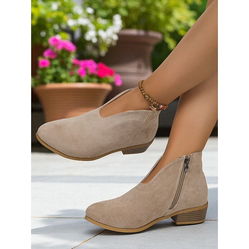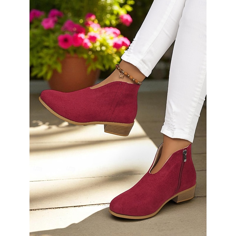 Women's Red Faux Suede Ankle Boots with Side Zipper – Casual & Elegant Style for Garden Parties, Park Walks and Daily Wear 1