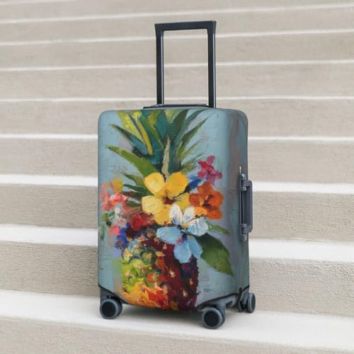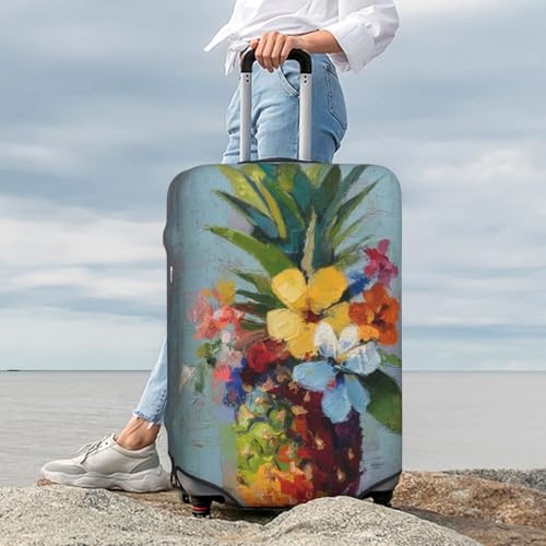 Colorful Pineapple And Flowers Elastic Travel Luggage Covers Dustproof Scratch-Resistant Suitcase Protector Fit 22-24 Inch 4