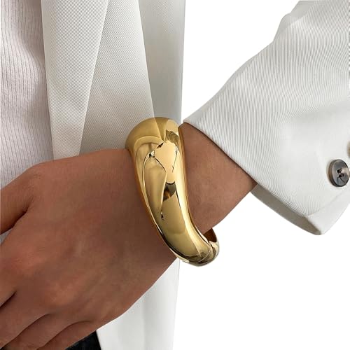 KISS WIFE Gold Bangles for Women, Trendy Minimalist Chunky Gold Bracelet, Big Thick Stackable Design, Adjustable Wrist Cuff, Jewelry Gift 5