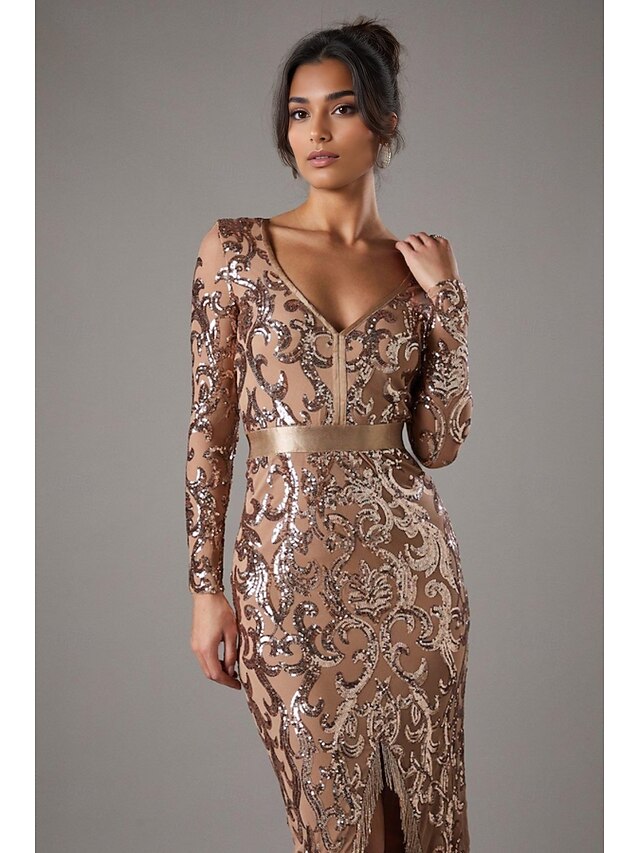 More information about Mermaid / Trumpet Sheath / Column Evening Gown Elegant Dress Formal Wedding Floor Length Long Sleeve V Neck Sequined with Tassel Slit