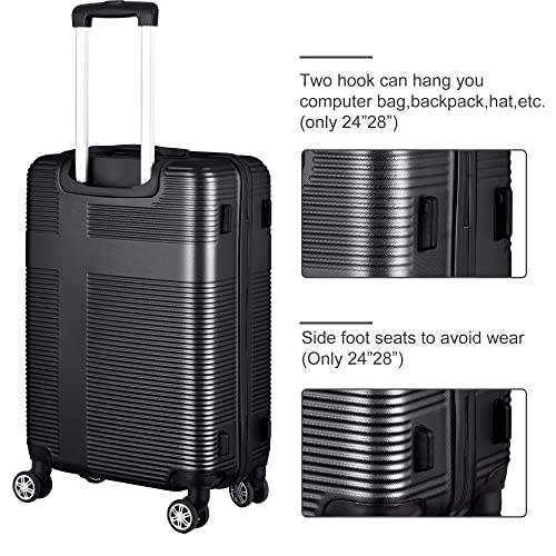 3 Piece Luggage Set with TSA Lock, Durable Lightweight Cross Stripe Suitcase Hardshell Luggage Set with Hooks and 360 Degree Spinner Wheels (20in/24in/28in) Black As Shown One Size 7