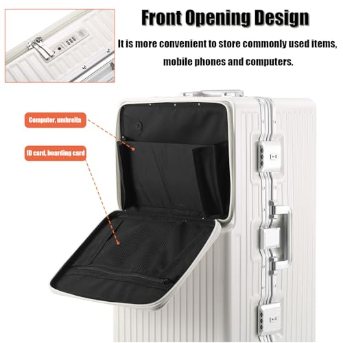 • 💞【Widden and larger size, front-opening design】This aluminum frame suitcase adopts a widened design and a 3:7 opening and closing ratio, adding enough space to serve you. The front-opening design makes it easier to access items. Whether you want to take out your iPad/iPhone to watch the news or take out your documents at the boarding gate, it will be very easy.