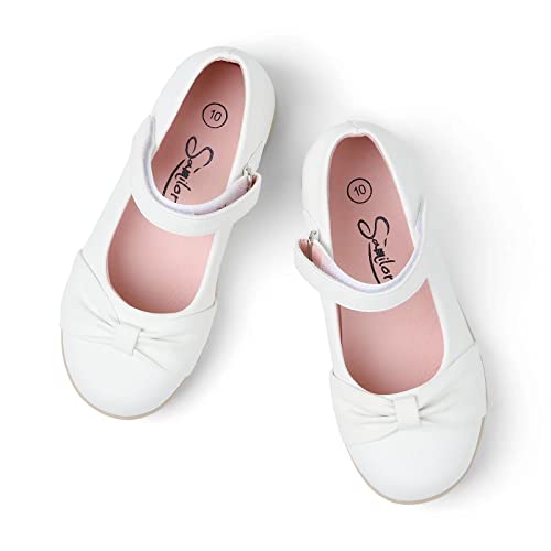 Samilor Mary Jane Shoes for Girls Comfortable Flats School Shoes for Girls Dressy Knot School Uniform Mary Jane Girls Flats Cute Girls Dress Shoes (Toddler/Little Kid) White 1 3