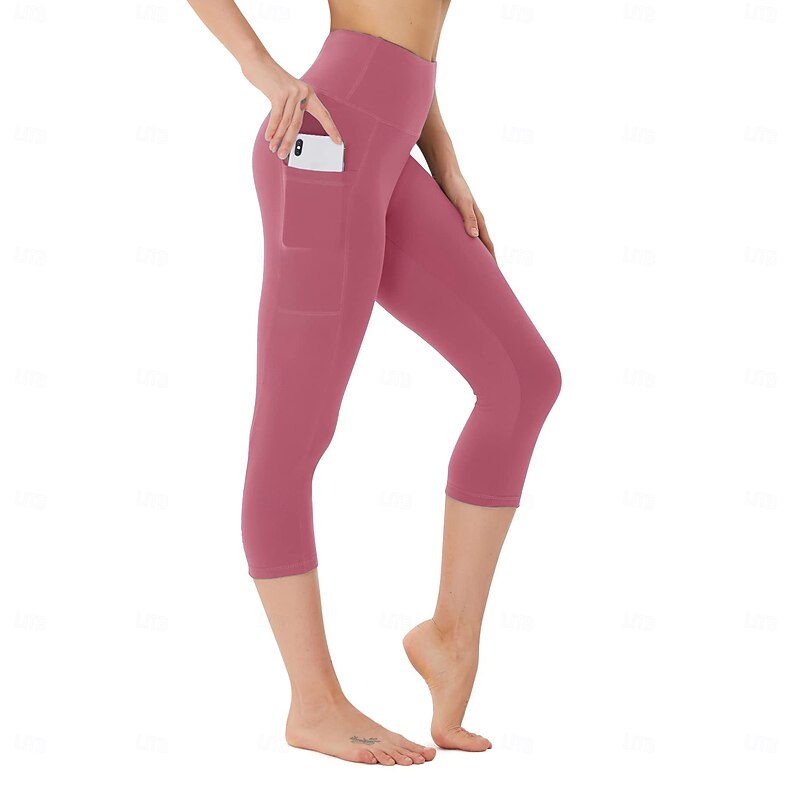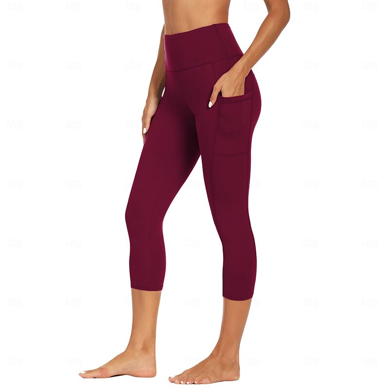 Women's Slacks Leggings Tights Athletic Full Length High Rise Plain Side Pockets Comfy Butt Lift Tummy Control Yoga Casual Daily Black Pink Burgundy Navy Blue Spring Fall Skinny 7