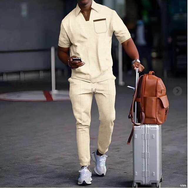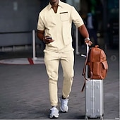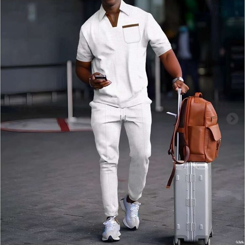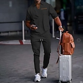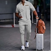 Men's Hoodies Set V Neck Lapel Casual Daily Softshell Solid / Plain Color Black White Royal Blue non-printing Activewear Casual Daily Fall 2