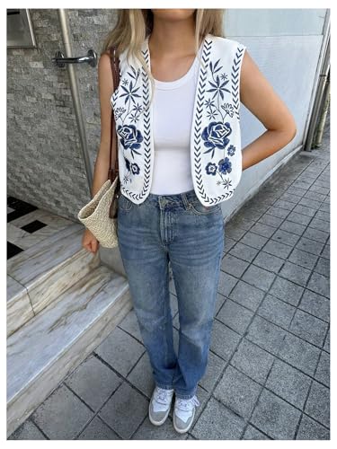 Why Choose OYOANGLE Women's Floral Embroidery Boho Vests Colorblock Vest Tops Open Front Vintage Waistcoat?