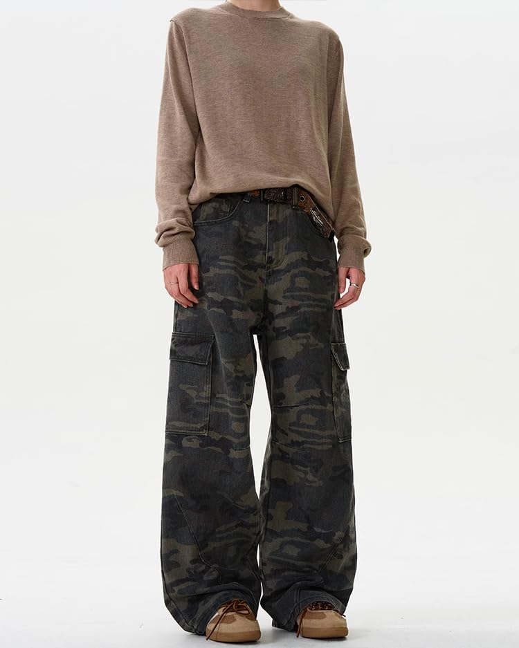 Men's Jeans Camouflage Work Pants Loose Fit Straight Leg Vintage Style Trouser for Men