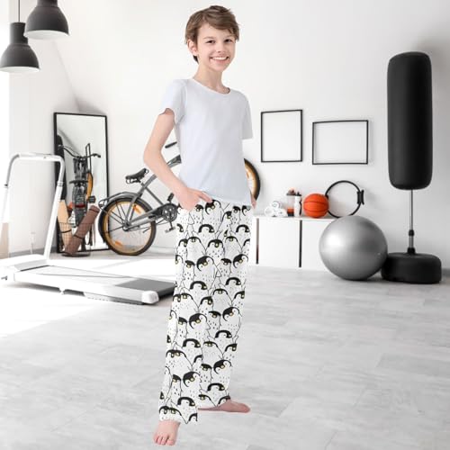 HOT ! Boy's Lounge Pants Naive Penguin Kids Jogger Pants Elastic Waist Long Bottoms with Pockets 6-14 Years