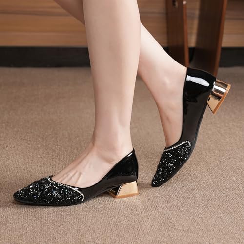Women's Wedding Pumps Rhinestones Sequins Chunky Low Block Heels Pumps Dress Evening Shoes for Women Bridal 6