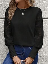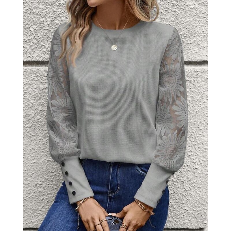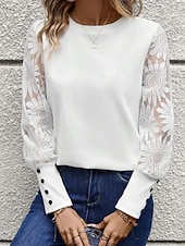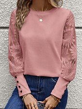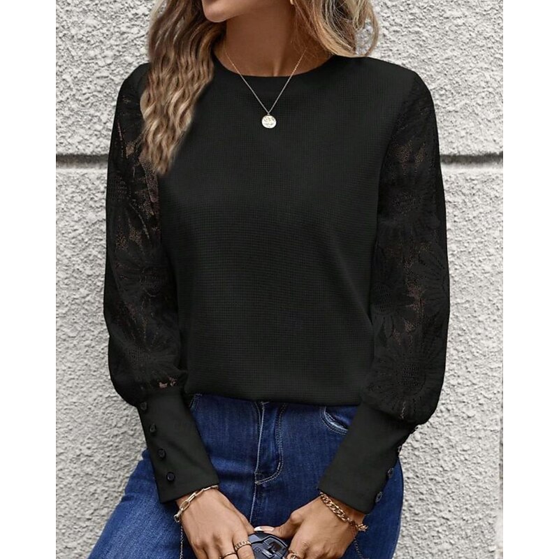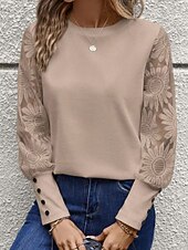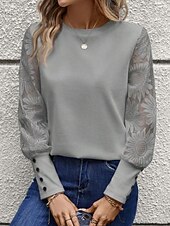Women's Blouse Elegant sleek Basic Long Sleeve Crew Neck Regular Tops Daily Lace Buttons Black White Pink Beige Gray Spring Fall Winter