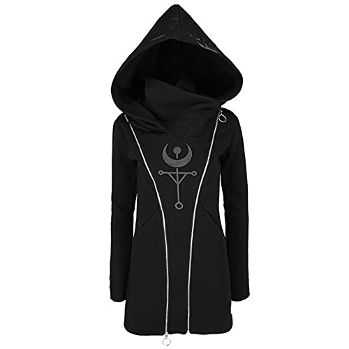HOT ! tuduoms Black Punk Gothic Hoodie Women Long Sleeve Zip Up Hoodie Moon Jacket Top Long Sweatshirts Plus Size Y2k Goth Clothing