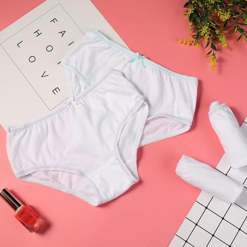 Buyless Fashion Girls Panties White Soft Cotton Briefs Underwear with Colored Trim 4 Pack 6
