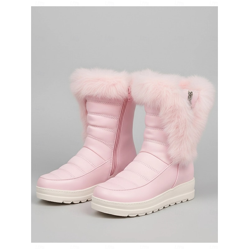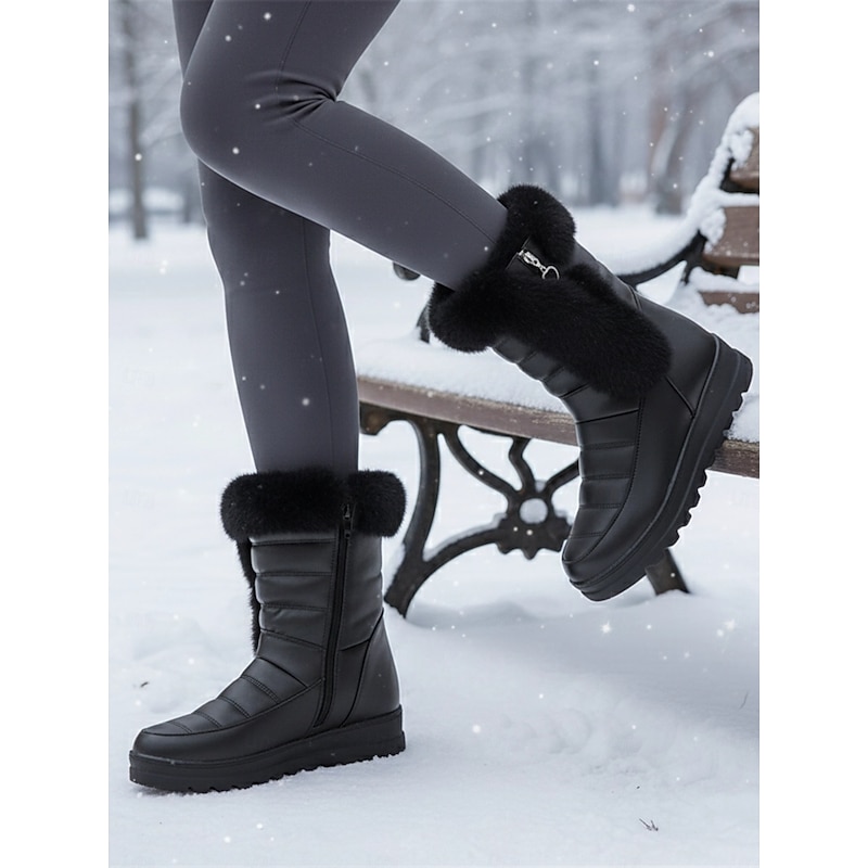 HOT ! Women's White Waterproof Snow Boots with Faux Fur Trim, Warm Insulated Lining, Non-Slip Sole, and Zip Closure – Perfect for Winter Outdoor Activities