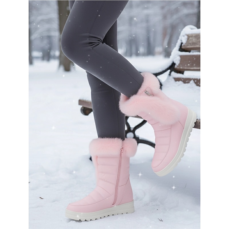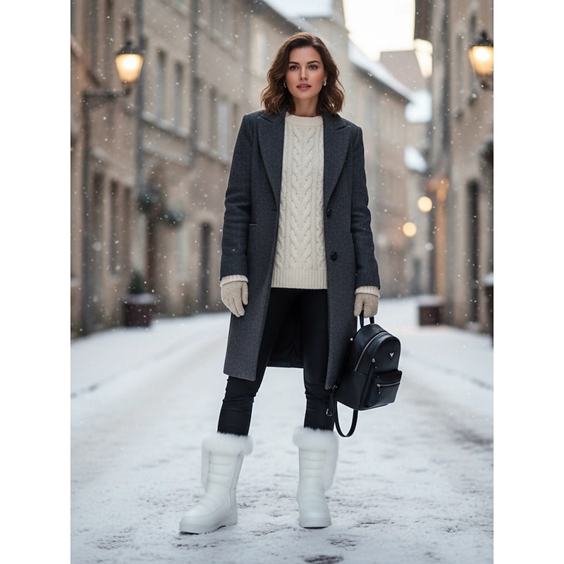 Women's White Waterproof Snow Boots with Faux Fur Trim, Warm Insulated Lining, Non-Slip Sole, and Zip Closure – Perfect for Winter Outdoor Activities 12