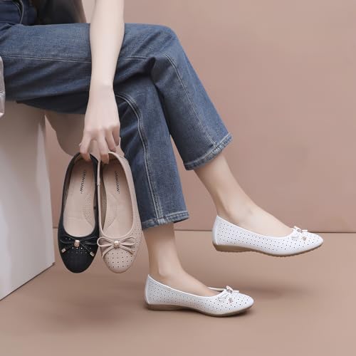 • 【Breathable &Bow Decoration Design】:These round toe flats for women are designed with nice bow which looks flattering on the foot.The Women's Ballet Flat shoes are made of PU leather upper and the feature a pattern of holes which makes you feel breathable and cozy while walking complete day.