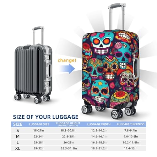 • SIZE AND COLOR: Sugar Skulls 4 sizes available to fit almost any luggage. SIZE S: fit 18-21 inch luggage; SIZE M: fit 22-25 inch luggage; SIZE L: fit 26-28 inch luggage; SIZE XL: fit 29-32 inch luggage .We have many kinds of colors, you can choose the one you like .The colorful cover also helps you find your luggage quickly.