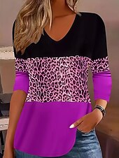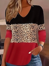 This Women's T Shirt Graphic Leopard Color Block Vintage fashionable Classic Long Sleeve V Neck Regular Tops Daily Print Red Blue Purple Green Gray Spring Fall Winter combines elegant design with practical functionality. Every detail has been carefully considered to ensure you get the best possible experience. The top-grade construction means this product will serve you well for years to come.