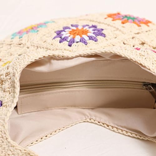 Women Knitted Shoulder Bag Beach Handbag Purse Colorful Flowers Crossbody Female Crochet Vacation 6
