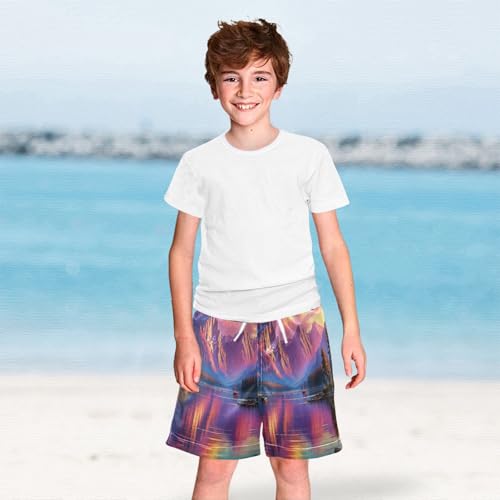 Mountain Lake Sunset Boys Swim Trunks Quick Dry Toddler Swimsuit Boy Bathing Suits Board Shorts Swimwear S 6