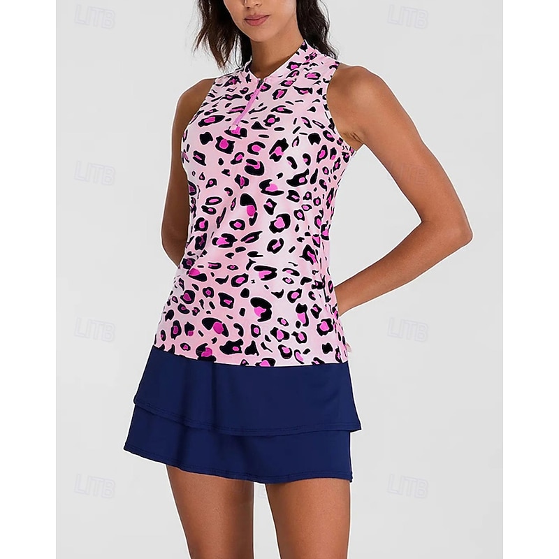 More information about Women's Graphic Leopard Sport Shirt Golf Polo Shirt Tennis Shirt Sleeveless Zipper High Elasticity Moisture Wicking Breathable Tennis Golf Pickleball Turndown Zip Collar Shirt Top White Pink Blue