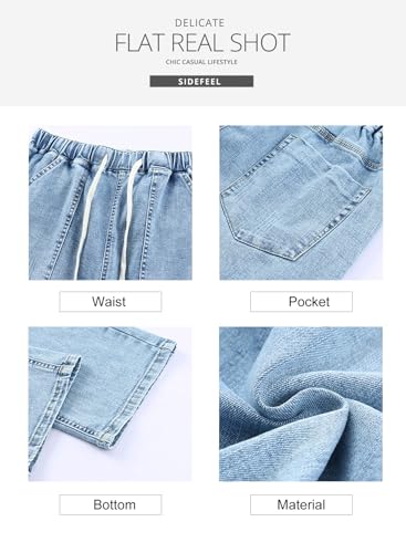 More information about Sidefeel Women's Jeans Ripped Joggers Elastic Drawstring Waist Cargo Denim Pants Size 14 Light Blue