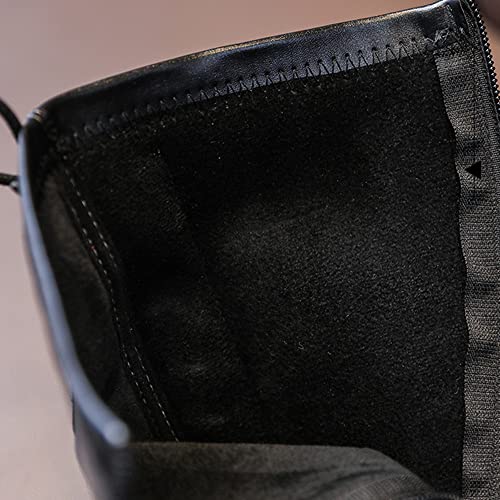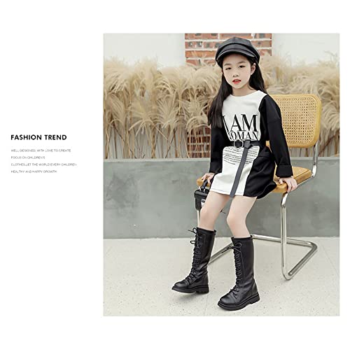 Girl's Fashion Boots Kids Girls Waterproof Lace-Up Side Zipper Fur Lined Knee High Leather Winter Boots Mid Calf Combat Riding Boots Dress Princess Shoes