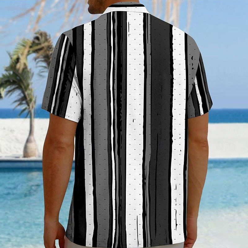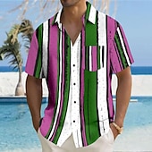 More information about Men's Striped Geometric Pattern Button Up Shirt Printed Shirts Short Sleeve Hawaiian Resort Outdoor Business / Ceremony / Wedding Summer Turndown Print Button-Down Yellow Pink Blue Gray
