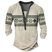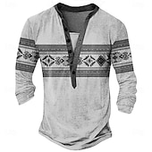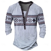 Men's Aztec Ethnic T Shirt Henley Shirt Long Sleeve Vintage Designer Retro Vintage Street Casual Daily Summer Spring Fall Light Gray Blue Green Khaki Henley Henley T-Shirt