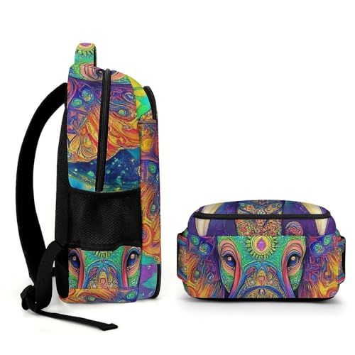 Casual Backpack for Unisex Adult, Novelty Elephant Head Tie Dye Art Large Capacity Backpack for Daily Use, Portable Shoulder Bag for Women Men 5