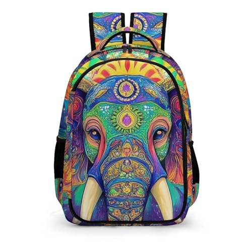 Casual Backpack for Unisex Adult, Novelty Elephant Head Tie Dye Art Large Capacity Backpack for Daily Use, Portable Shoulder Bag for Women Men 1
