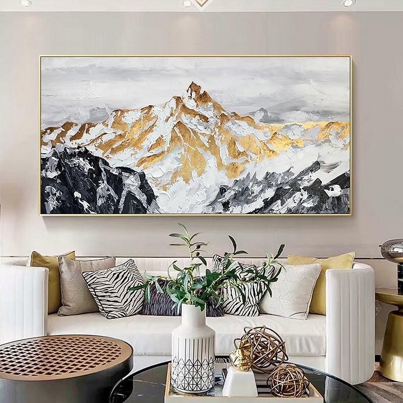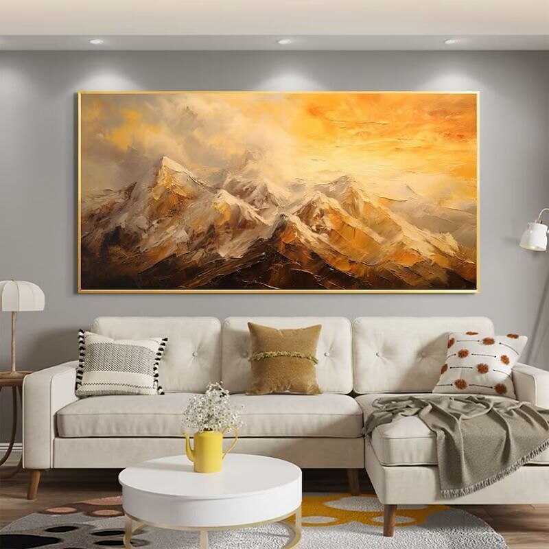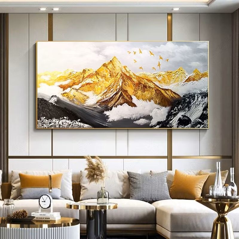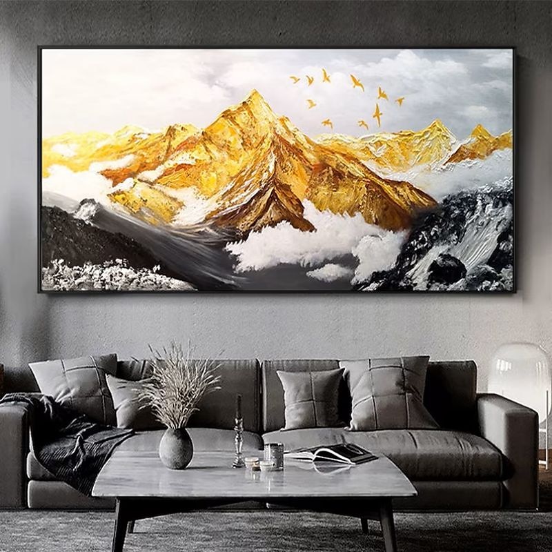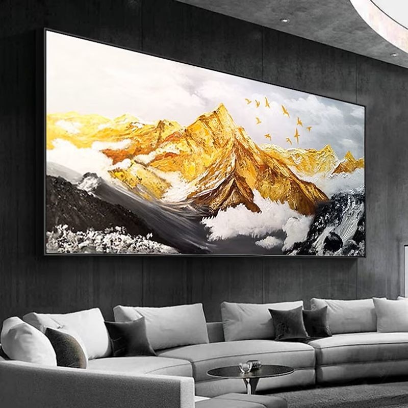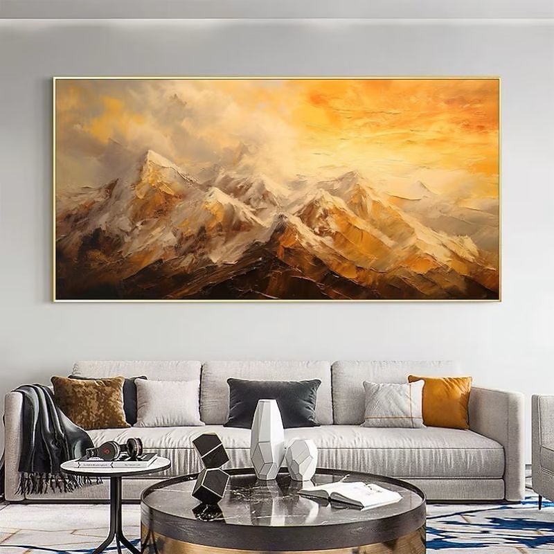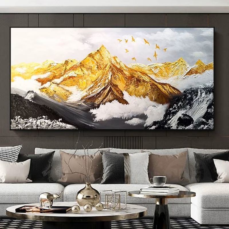 Handmade Hand Painted Oil Painting Wall Art  Large Size Contemporary Golden Mountains Home Decoration Decor Rolled Canvas No Frame Unstretched 1