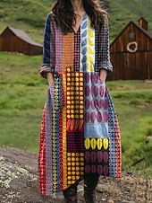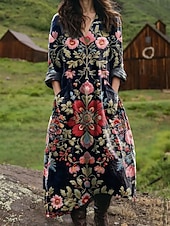 More information about Women's Maxi Dress Sundress A Line Dress Vacation Casual Boho Birthday Daily Holiday Loose Fit Floral Graphic Geometric Long Sleeve V Neck Black Blue Orange Spring Fall