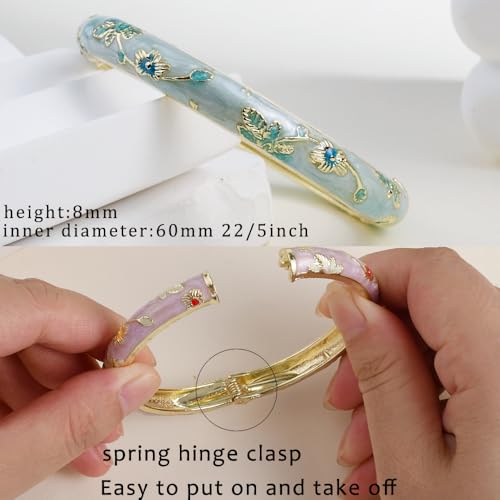Vintage Flower Bangle Chinoiserie Cloisonne Bracelet For Women Summer Elegant Vibrant Ethnic Jewelry Gifts 6