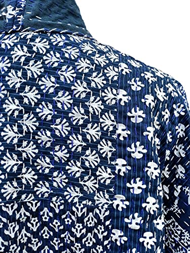 - Indigo Patchwork Kantha Gudri Kimono Jacket Kimono Women Wear Quilted Jacket (XL, Blue)
