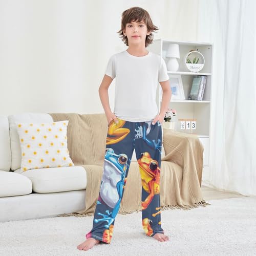 ZZXXB Colorful Frog Boys Long Pants Soft Trousers Elastic Waist Kids Lounge Bottoms with Pockets S-XL 1