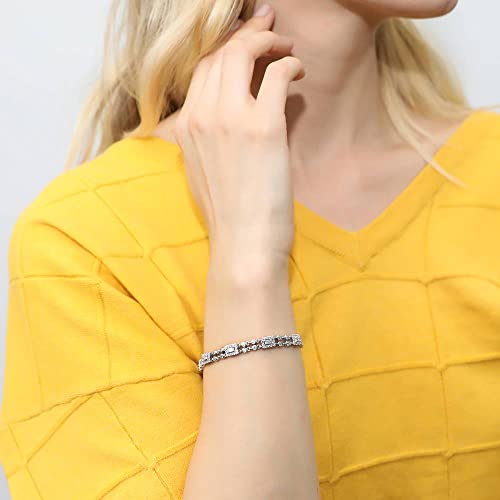 • 925 Sterling Silver: This art deco chain bracelet is crafted with fine solid sterling silver, stamped 925. Rhodium plated for enhanced durability and tarnish resistance.