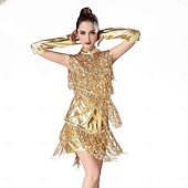 $49.99 - Latin Dance Dress Glitter Fringed Tassel Side Draping Women's Training Performance Party Dress Elastane Sequined Terylene 2025. Shop for cheap Practice Dresses online? Buy at lightinthebox.com on sale today!