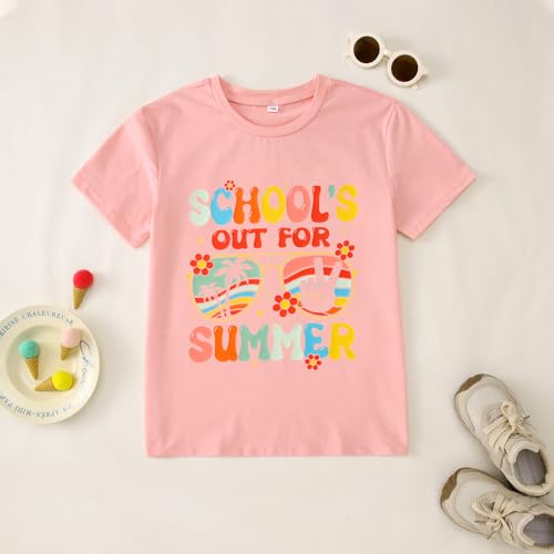 MODNTOGA Girl Last Day of School Shirt Big Kid School's Out for Summer T-Shirt Flower Sunglasses Graphic Short Sleeve Tee Top