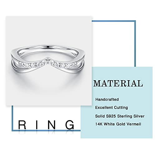 MOOSEA Moissanite Stackable Rings for Women, 14K White Gold Vermeil Double Wishbone Wedding Band D Color VVS1 Clarity Lab Created Moissanite Double Curved Moissanite Wedding Band for Women 5