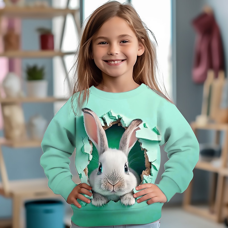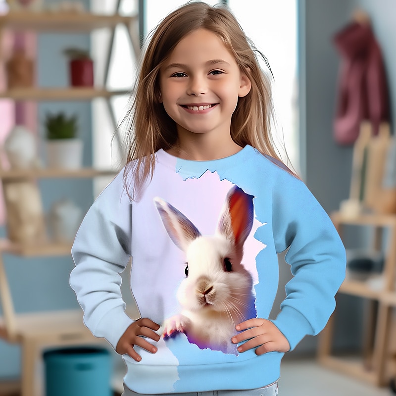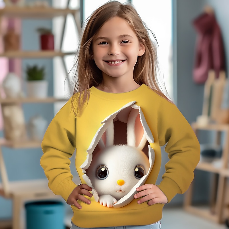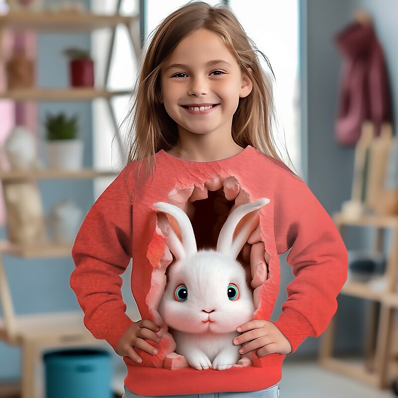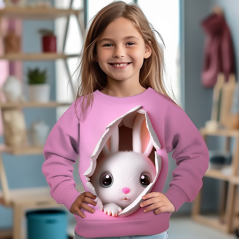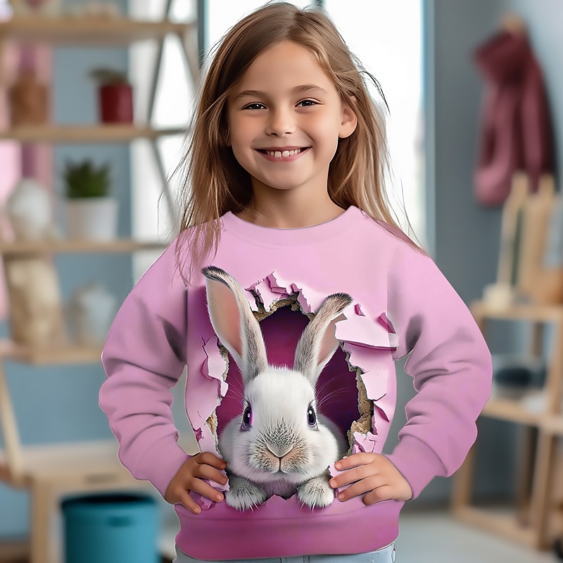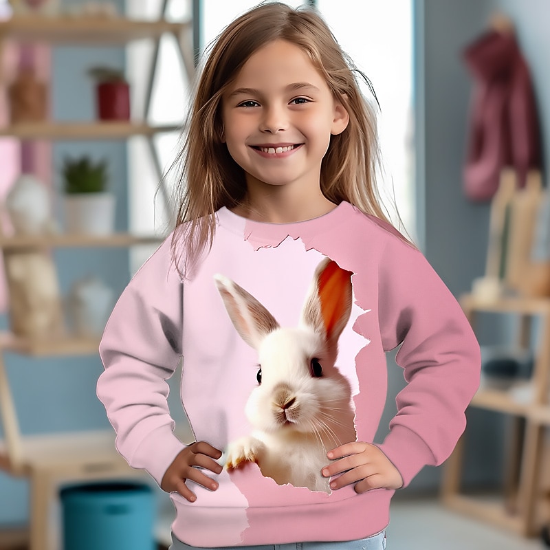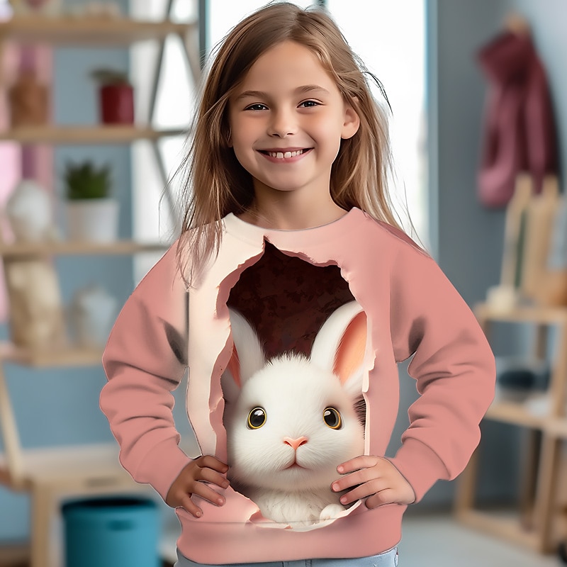 More information about Girls' 3D Cartoon Rabbit Bunny Sweatshirt Long Sleeve 3D Print Summer Fall Fashion Streetwear Adorable Polyester Kids 3-12 Years Outdoor Casual Daily Regular Fit