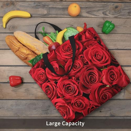 Large Capacity Shoulder Bag with Zipper,Reusable Grocery Red rose Print Tote Bag for Shopping 1