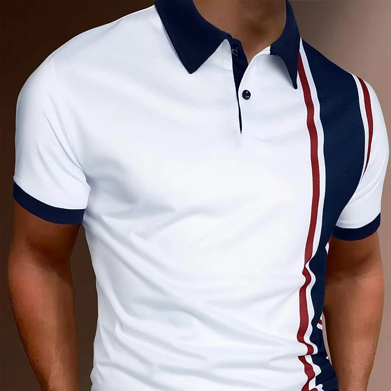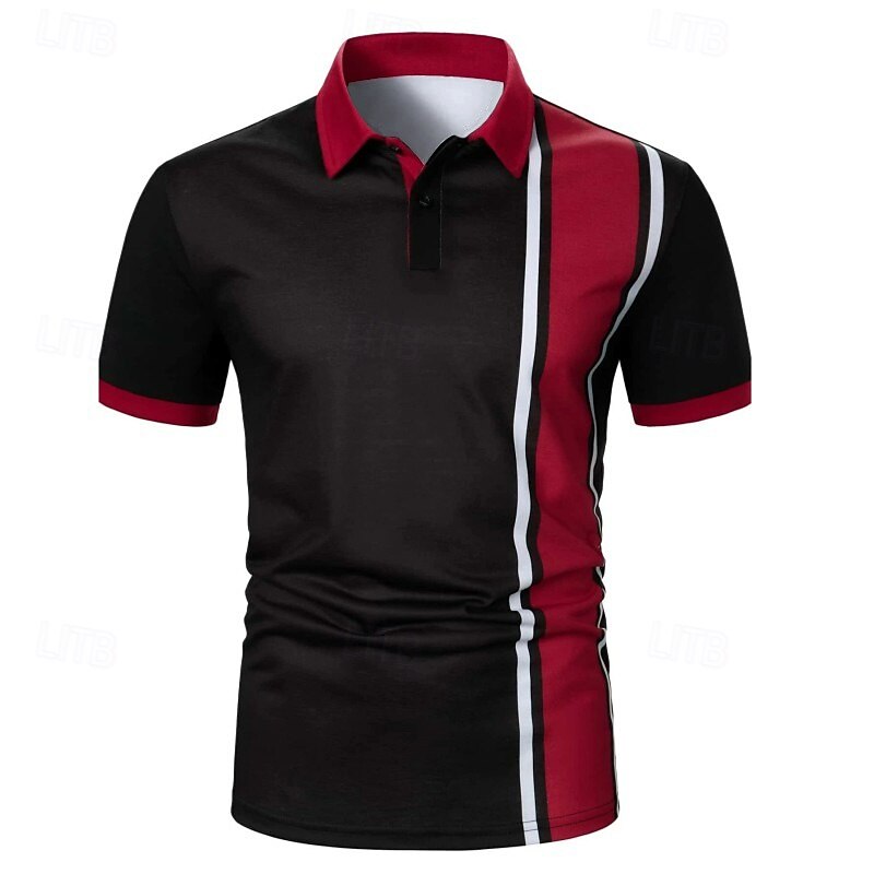 More information about Men's Polo Shirt Golf Shirt Casual Holiday Classic Short Sleeve Fashion Basic Color Block Button Summer Regular Fit White Red Black-white Polo Shirt
