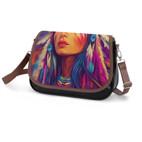 HOT ! Native Am-erican Indian Woman Women's Crossbody Bags Leather Messenger Handbag Small Shoulder Bag Purse