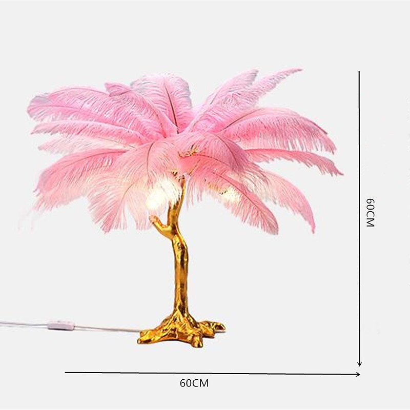 LED Feather Table Lamp Ostrich Feather Beside Lamp 60cm Pink White Blue Wedding Christmas Decorative Lights Birthday