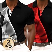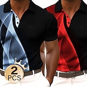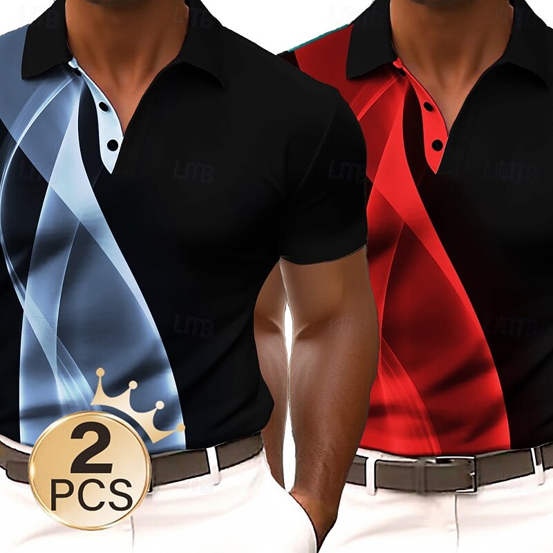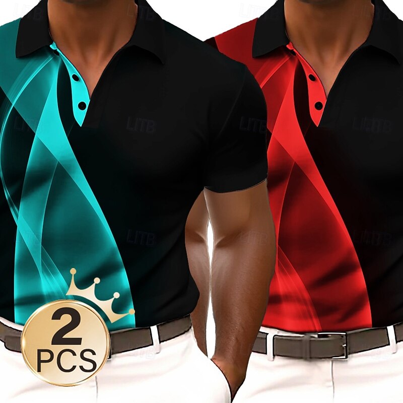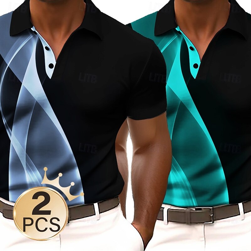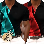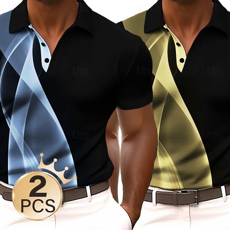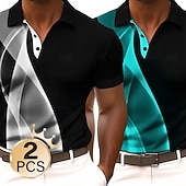 Men's 2Pcs  Geometic Line Polo Short Sleeve Polo Shirts Lapel Business Casual Business Athleisure 3D Print Buttons Summer 2