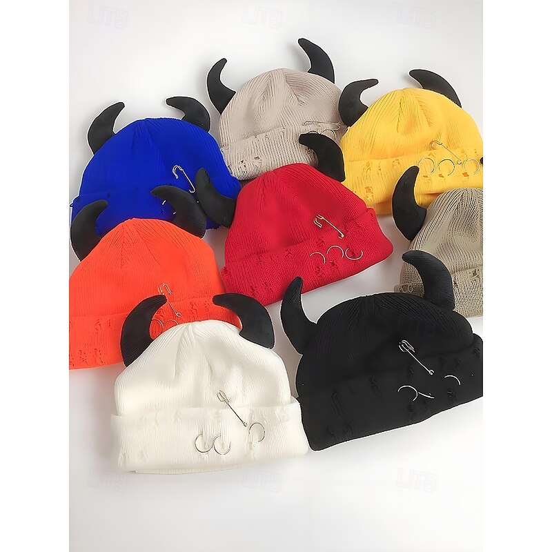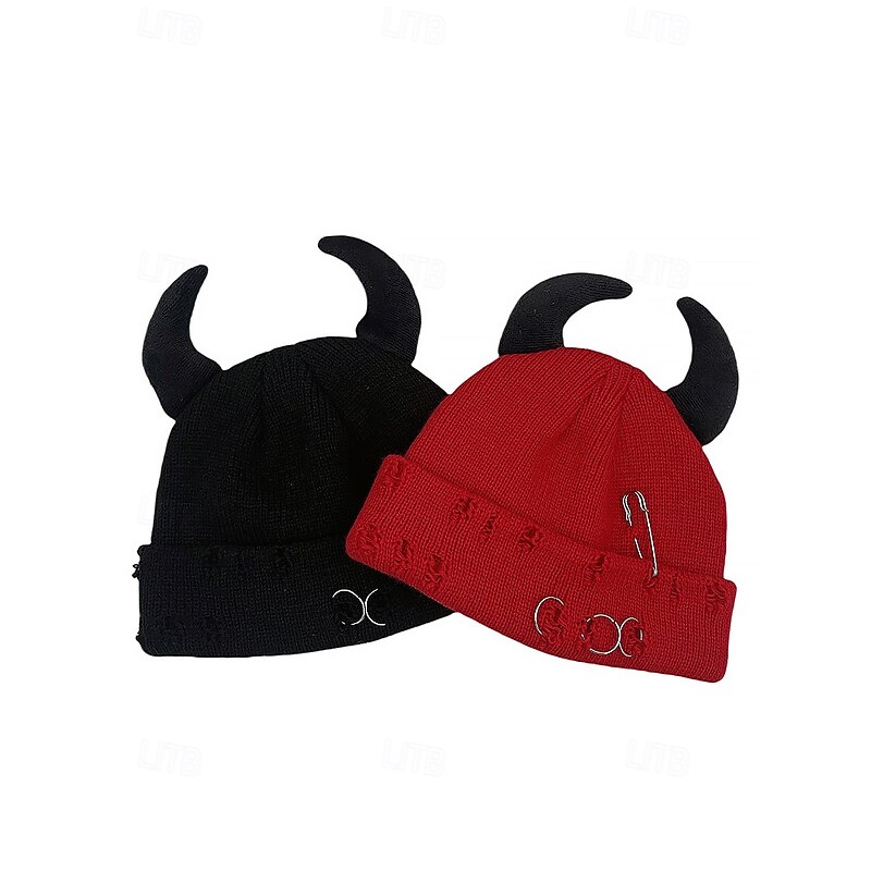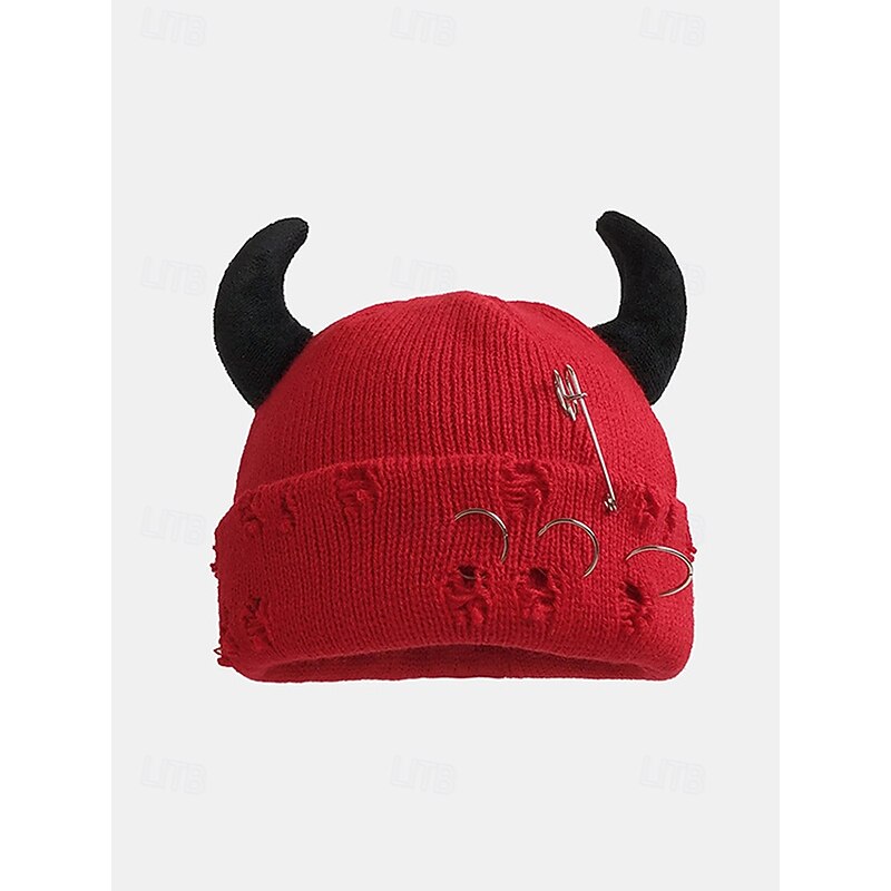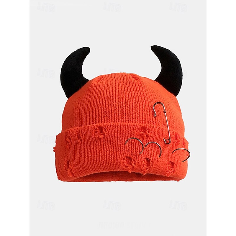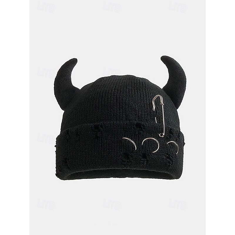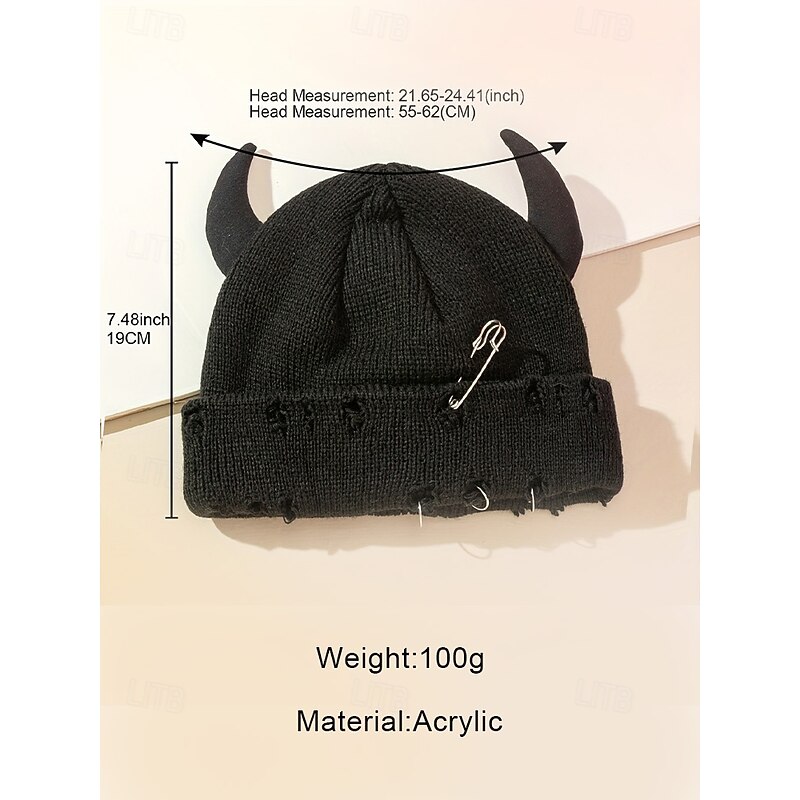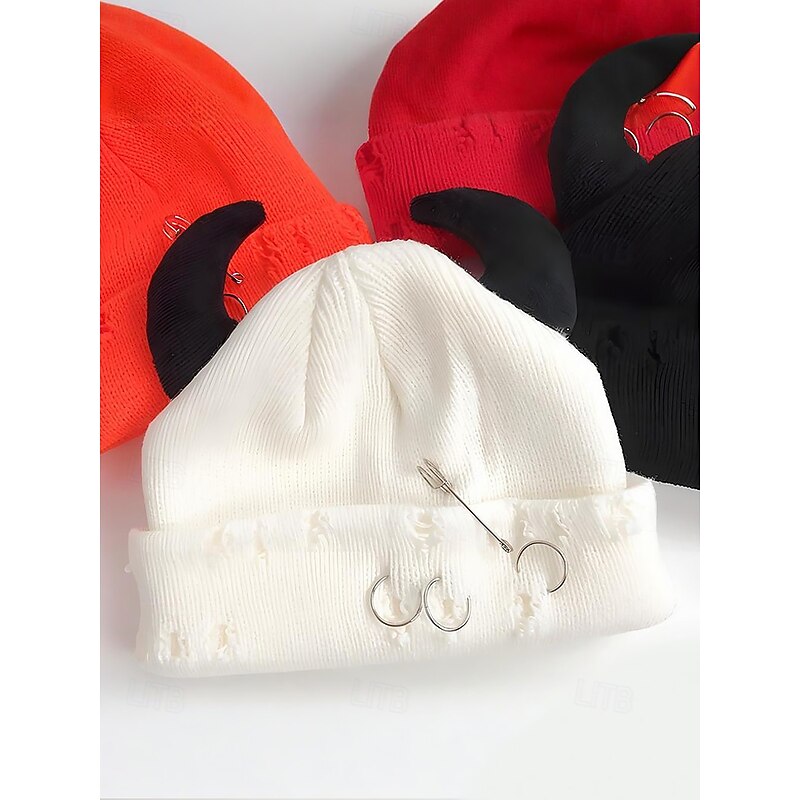 $11.99 - Unisex Halloween Devil Horn Knit Beanie Hat – Gothic Punk Skull Cap with Safety Pin and Ring Details for Men and Women Party Costume 2025. Shop for cheap Halloween Accessories online? Buy at lightinthebox.com on sale today!