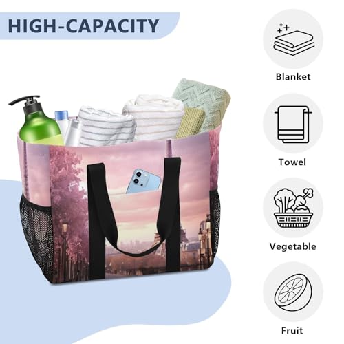 Romantic Paris Eiffel Tower Large Beach Bag Waterproof Beach Tote Bags for Women Travel Gym Pool 7