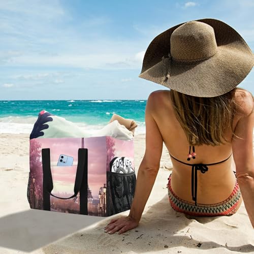 Romantic Paris Eiffel Tower Large Beach Bag Waterproof Beach Tote Bags for Women Travel Gym Pool 5