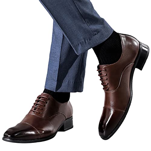 Men's Formal Business Dress Shoes Handsome Oxfords Cap Toe Microfiber Leather Wedding Shoes 7