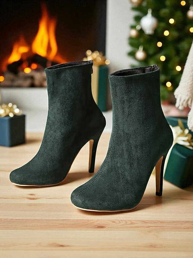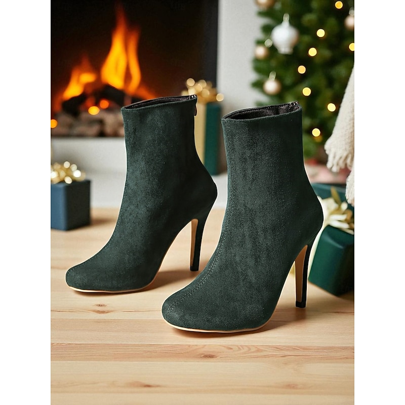 HOT ! Women's Green Suede Ankle Boots with Stiletto Heel – Elegant Slim Fit Short Booties for Ladies, Perfect for Christmas Parties, Evening Events & Formal Outfits